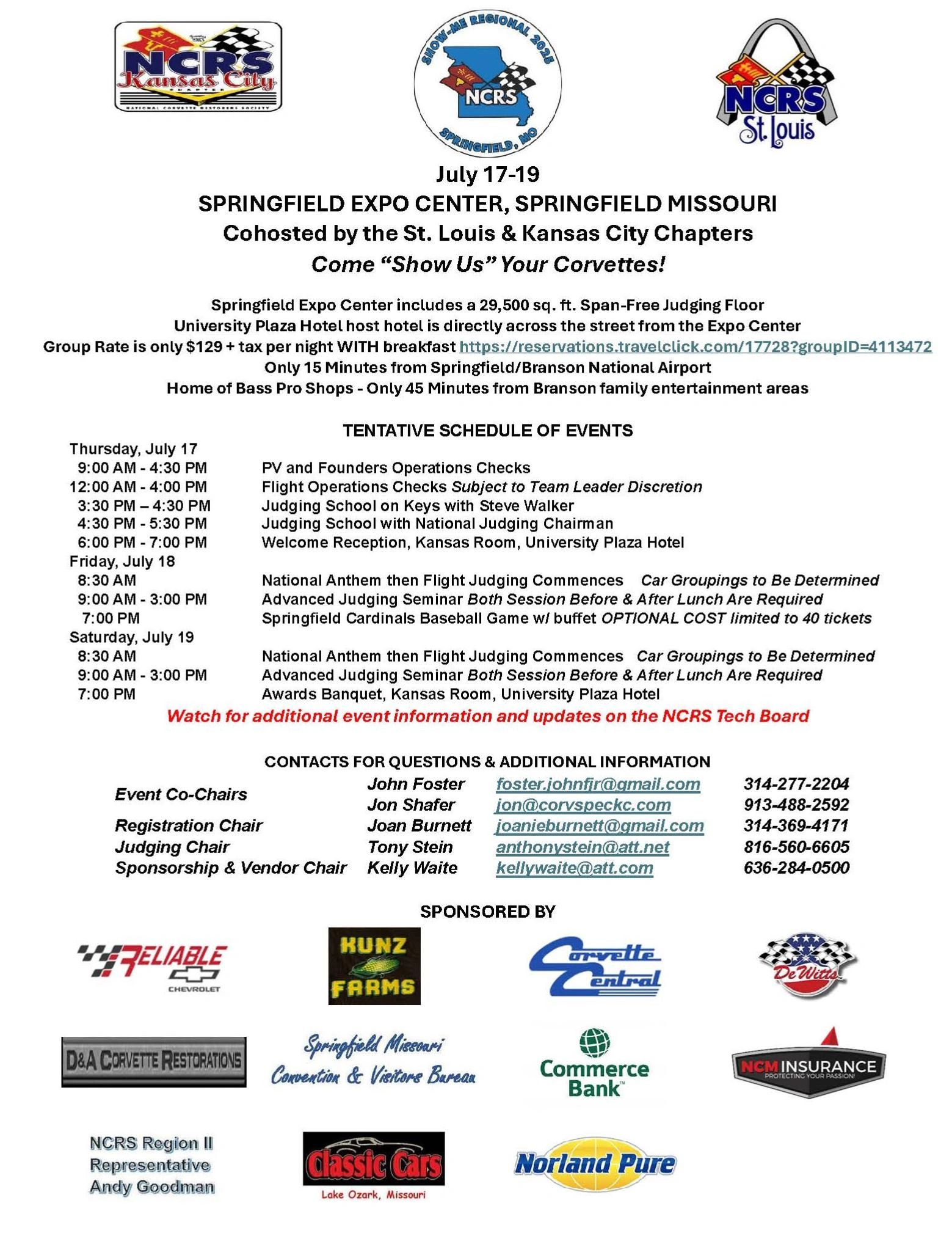 The Kansas City and St. Louis Chapters of the NCRS are proud to announce the 2025 Show Me Regional to be held at the Springfield Expo Center in Springfield, MO on July 17-19, 2025. More information to come!!!